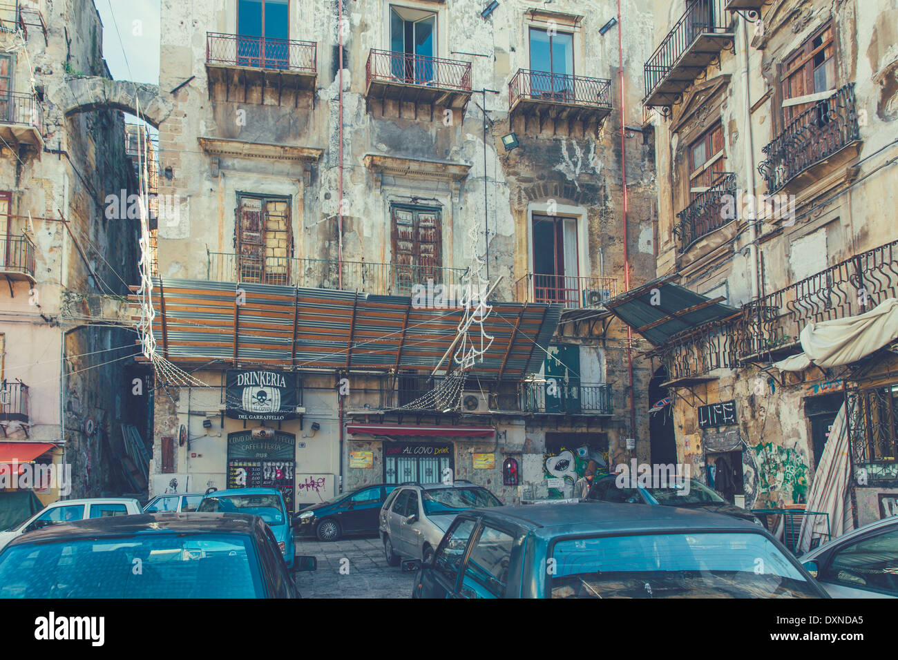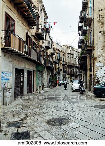 Italy Sicily Palermo Via Del Ponticello Old Houses Stock